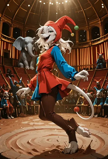 • 재미있는 의상: 재미있는 의상, 재미있는 모자, 재미있는 셔츠, 주름 치마, 갈색 레깅스, 탈볼, 빨간 탈볼,