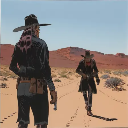 Blueberry is a Wild West comic saga by legendary French artist Jean Giraud. This LoRA is trained on material taken from the last few volumes of this saga, starting with volume 23 to volume 28. These volumes have much clearer lines and art style than the bulk of the series. The LoRA does a great job of capturing Giraud's intricate style and legendary coloring that the series has.