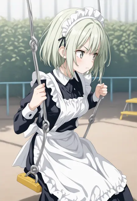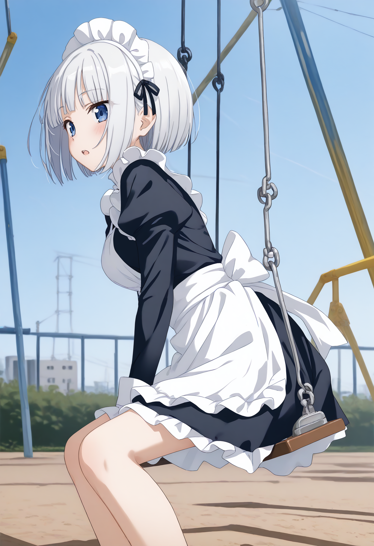 日本の公園に設置してある鎖で吊るされた椅子に座って前後に揺れるのを楽しむ遊具のLoRAです。