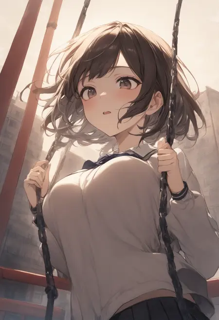 这是LoRA,一种安装在日本公园里的游乐设施,人们坐在由链条悬挂的椅子上,前后摇晃以享受乐趣。