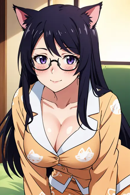添加 "defTsubasa, black hair, purple eyes, long hair, cat ears" 以获得她的长发+猫耳组合。