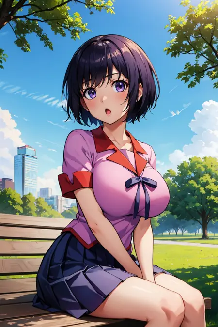 添加 "altTsubasa, short hair, black hair, purple eyes, hairclip" 以获得她的短发造型。