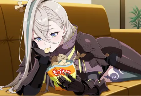 二阶进阶: 蓝眼,长发,灰发,条纹发,单束发,中国发簪,高领,装甲连体服,盔甲,护手,身体纹身,不对称腿装