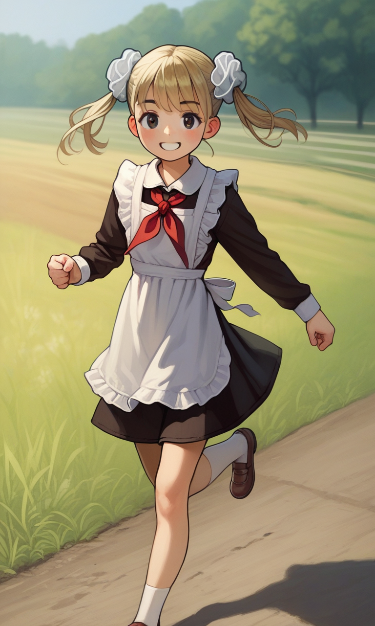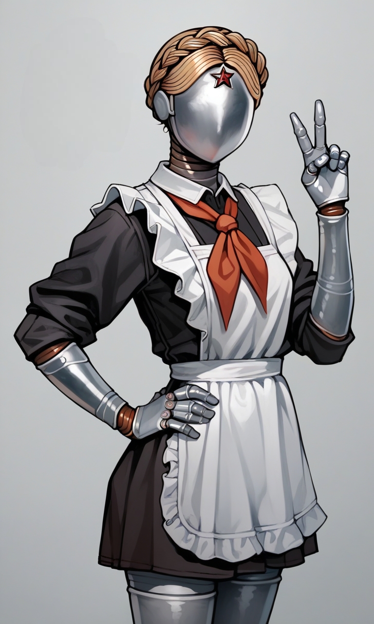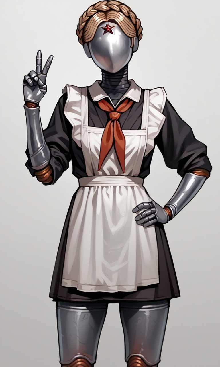 트리거 단어: 소련 학교 여학생 유니폼, 프릴 장식된 앞치마, 프릴 장식된 머리띠, 빨간 넥커치프