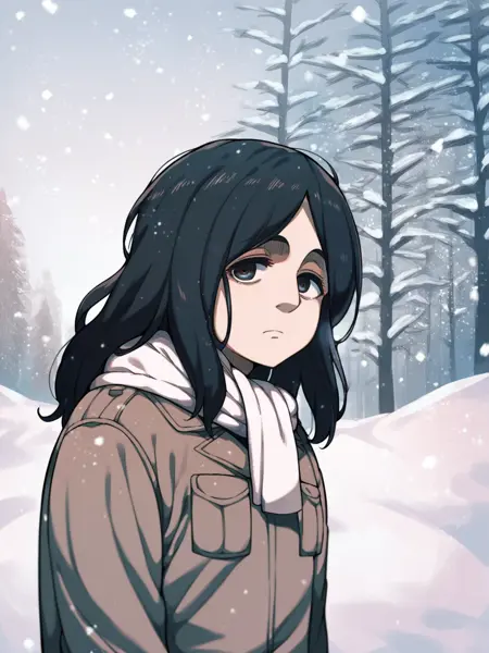 基本的なプロンプト:1girl, pieck, black hair, long hair, black eyes