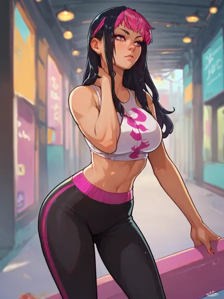 JuriMS , sfva, multicolored hair, long hair, yoga pants