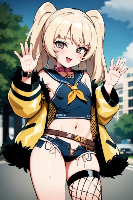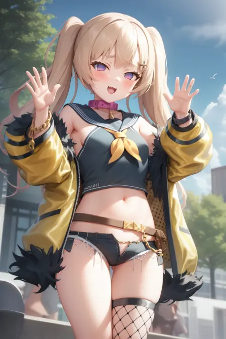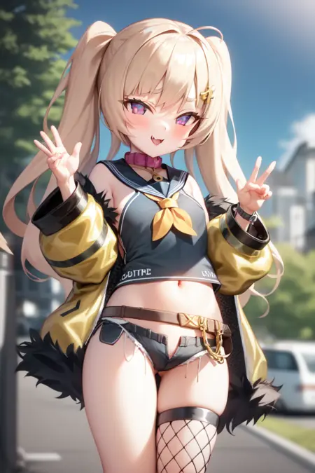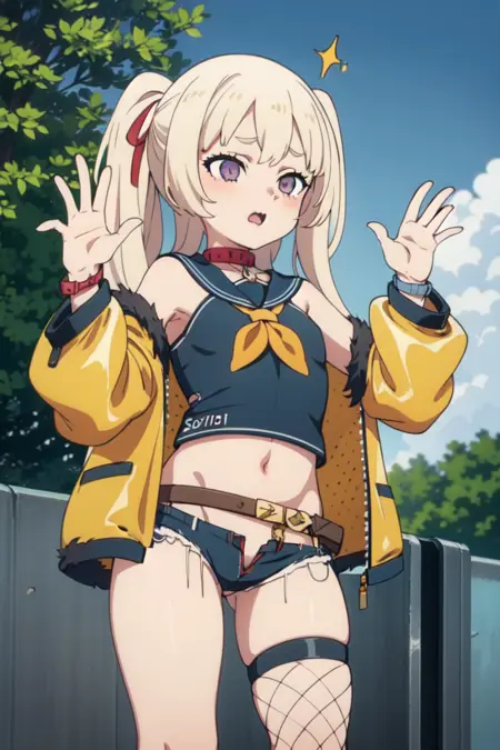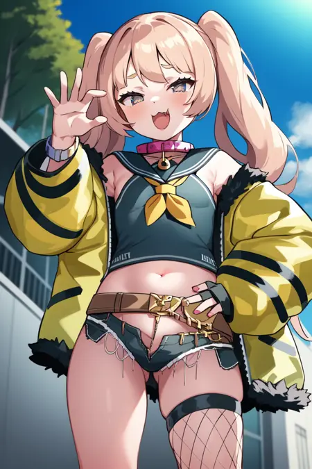 默认触发词为 bache。她的基础服装可通过使用 短款微裤、水手领、无袖、单侧过膝袜、网状袜、夹克、露脐装 或更少组合来获得,具体取决于你的需求 :p。bache 触发词也可用于她原本并不拥有的其他服装。