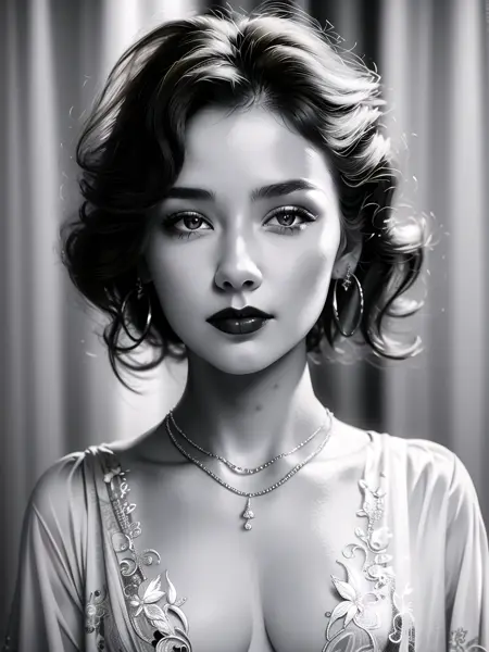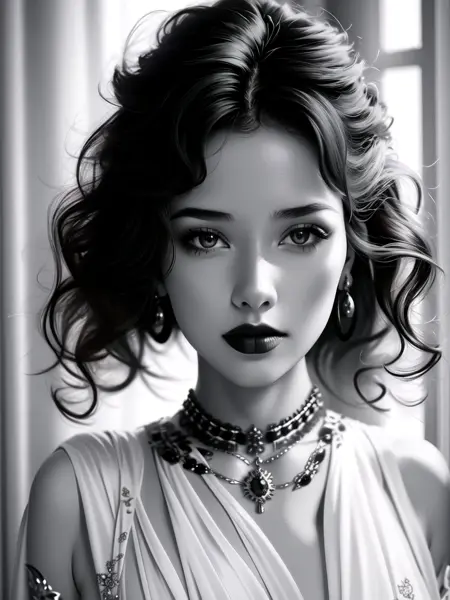 This LoRA model can generate refined portraits in black and white style with exquisite makeup, natural skin, and mainly side lighting. Generalization tests have been conducted on different hairstyles, clothes, accessories, etc., and all have good results. The training set consists of half European and American girls and half Asian girls. If you need to stably produce pictures of Asian girls, you can appropriately reduce the weight and use large portrait models of domestic big shots;