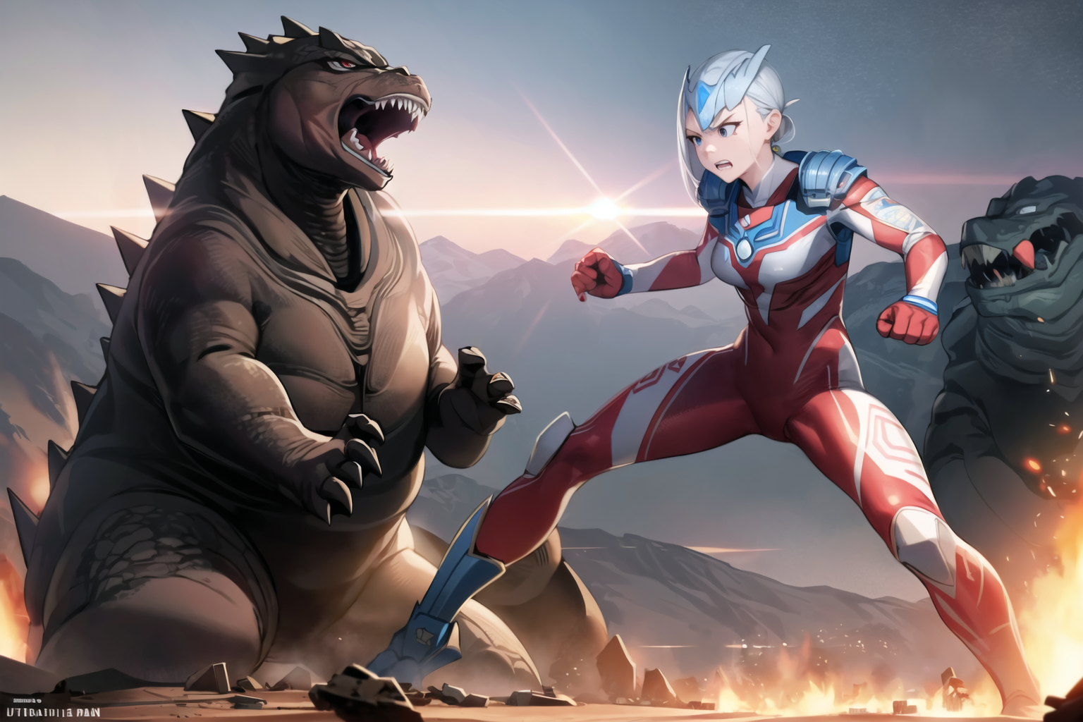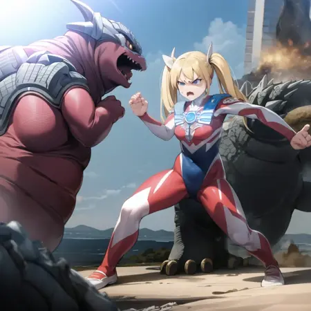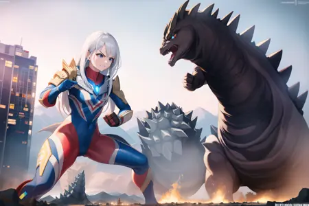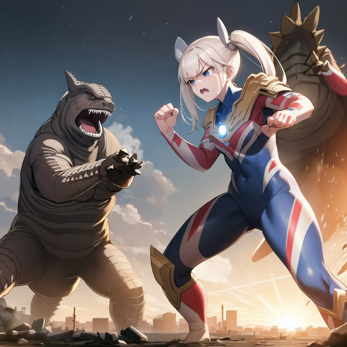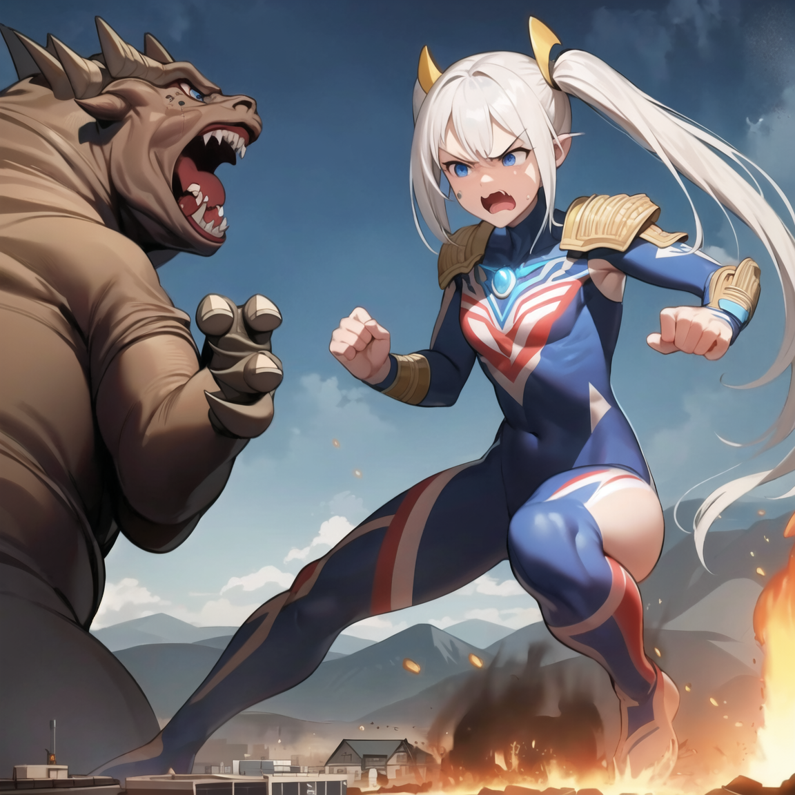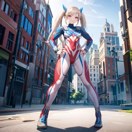 请注意,触发词已更改为“Ultragirl”,而非“Ultgp”。使用时请像之前一样搭配“ultraman bodysuit”。