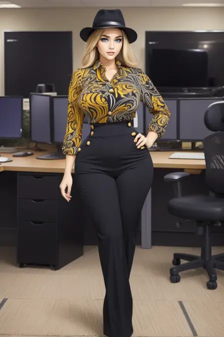 💻Office Chic Collection📝 - Gothic Patterned Blouse and Slacks