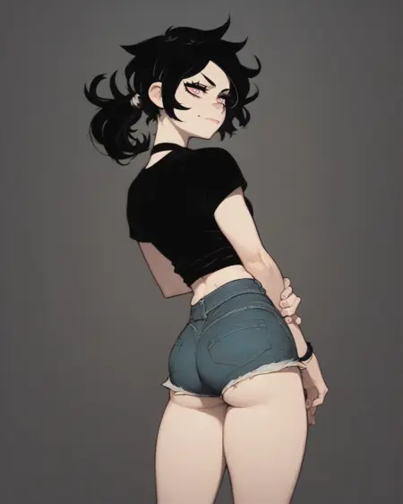 使用方式:ashley graves,黑发,(可选)黑色上衣,牛仔短裤