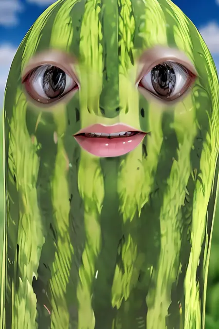 このLoRAは、TikTokで人気の「スイカ」フィルター風の画像を生成できます。ただの遊びで作ったので、品質には一切保証できません!!!