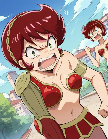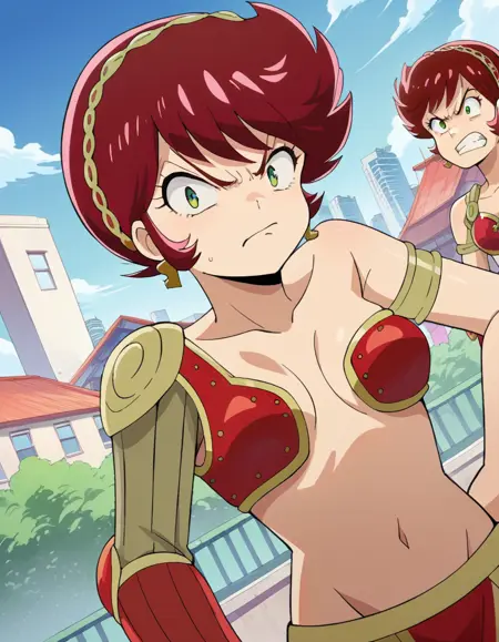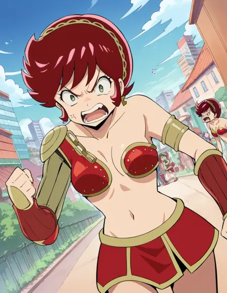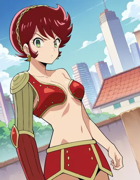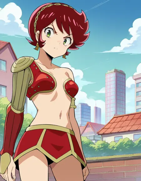 benten, short hair, green eyes, red hair, hairband,