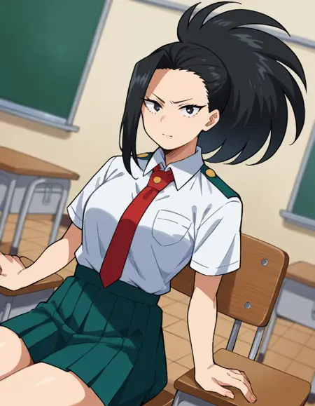 yaoyorozu momo、ロングヘア、前髪、黒髪、ポニーテール、黒目、ハイポニーテール、ワイドポニーテール、