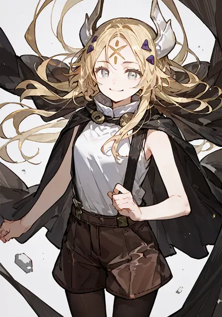 服装B:white shirt,suspenders,sleeveless,cape,brown shorts,black pantyhose,