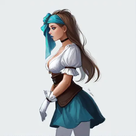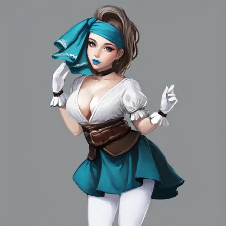 For her makeup, actually using "makeup" or "blue lips" as prompts can make her look very... dolled up to say the least, I found it better not to prompt for her makeup at all and then use Adetailer for the face and add the blue lips and makeup prompts there.