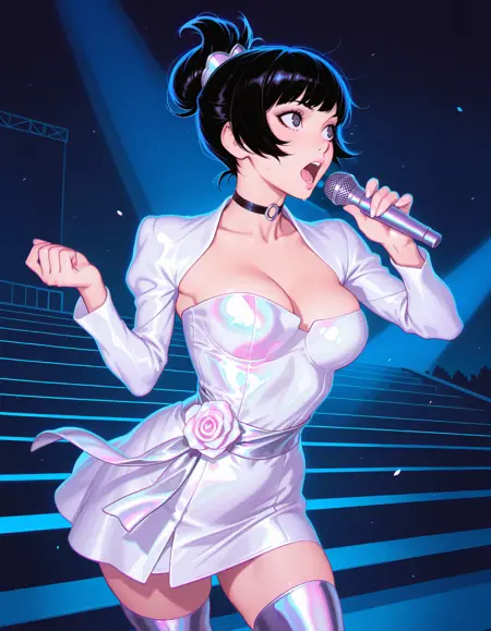 dress, cleavage, shrug \(clothing\) open neck, rose