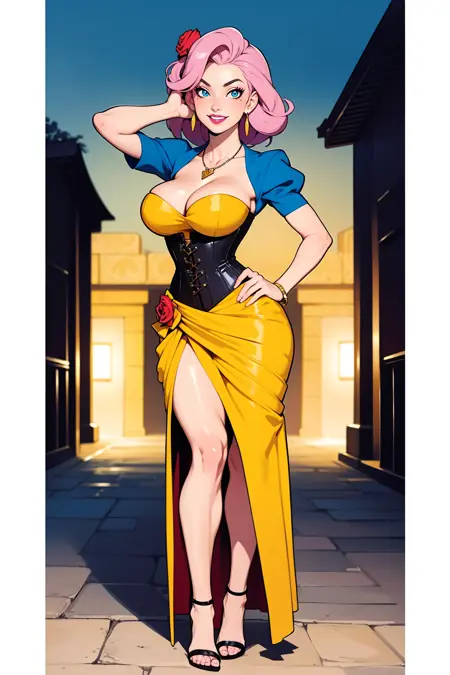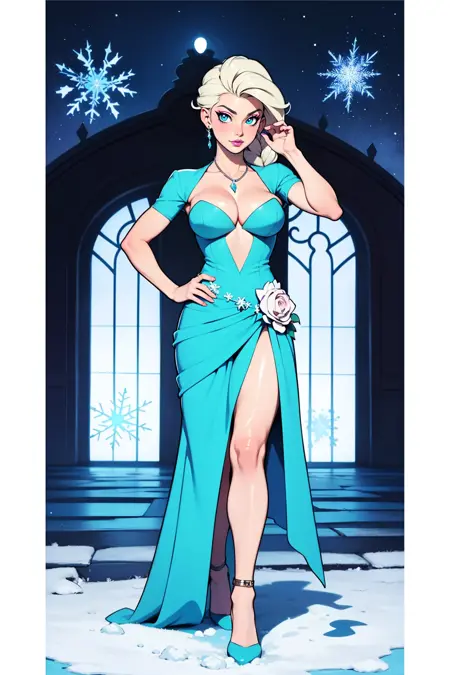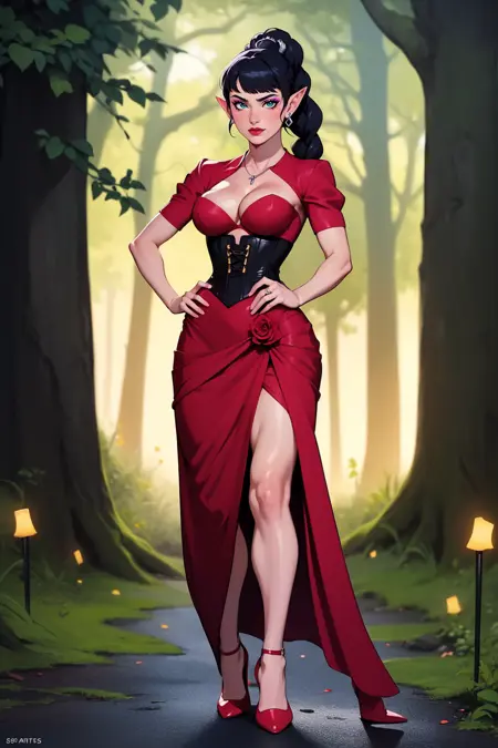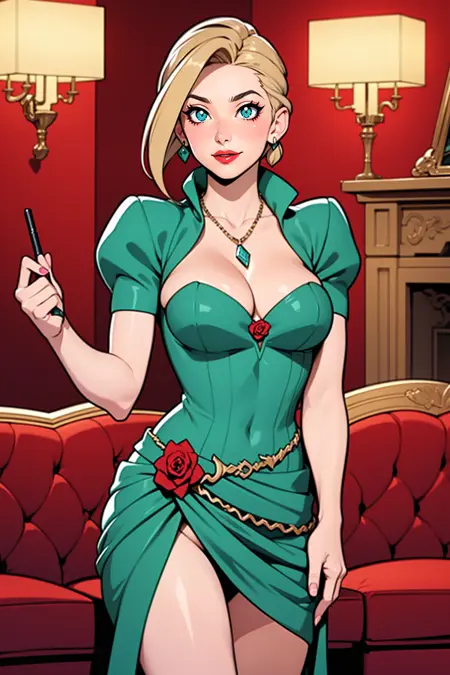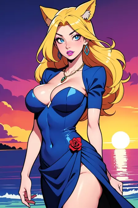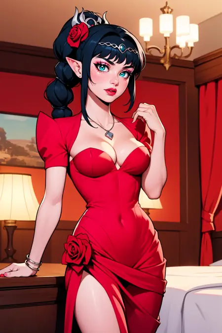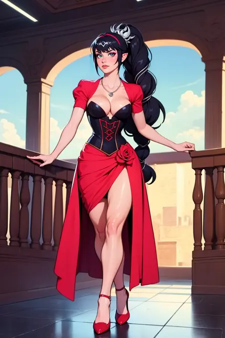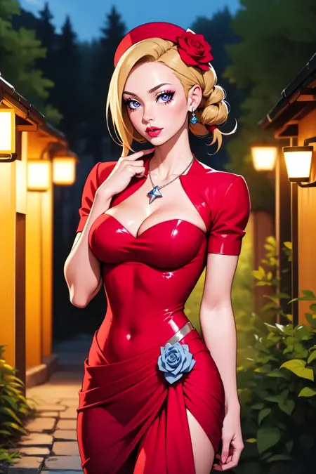 dress, cleavage, shrug \(clothing\) open neck, rose