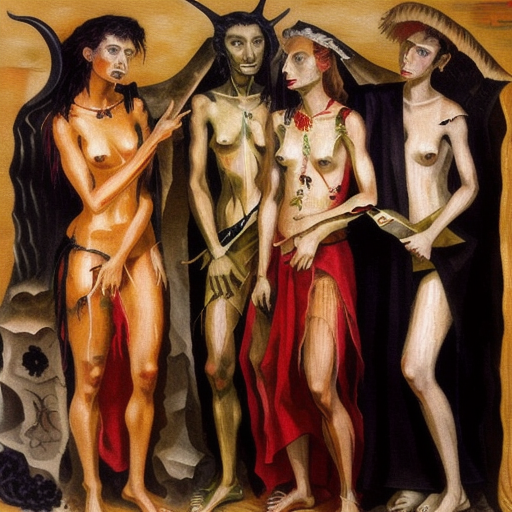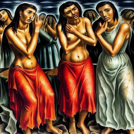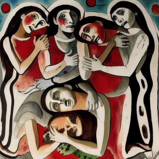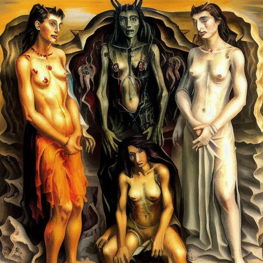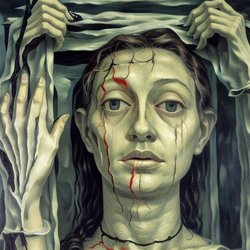 forner, painting, subreal, surreal, horror, hellish, abstract, faces, crucified, realistic, women, blood, abomination, no humans
