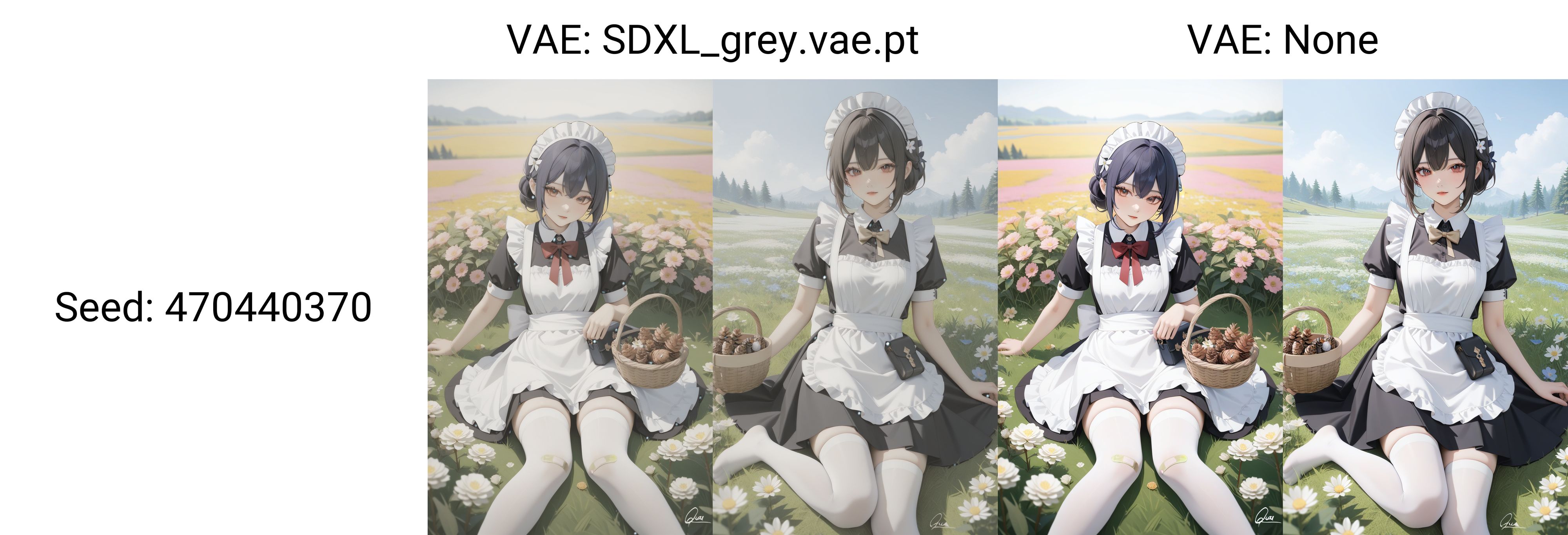 这个是专门用于再SDXL复刻SD1.5烂VAE灰色调的VAE,你可以将其丢到模型里替换模型原有的VAE,从而使得模型在正常情况下也生成灰色调的图。