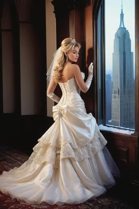 このLoRAは、ボールガウンやブライダルガウンでよく見られる「ピックアップ」と呼ばれる縫製技術を生成するために特別に学習されました。特定のタイプのガウンに対して学習されていないため、プロンプトにガウンのその他の詳細も含めてください。