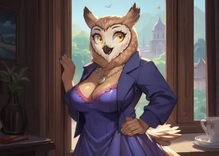 部分剧集截图与粉丝艺术(仅1幅由艺术家创作)被使用,并填充了生成图像(原型LORA)。你需要为她指定服装,否则她只是一只拥有心形羽毛的普通穴鸮,由“Furry”检查点生成。