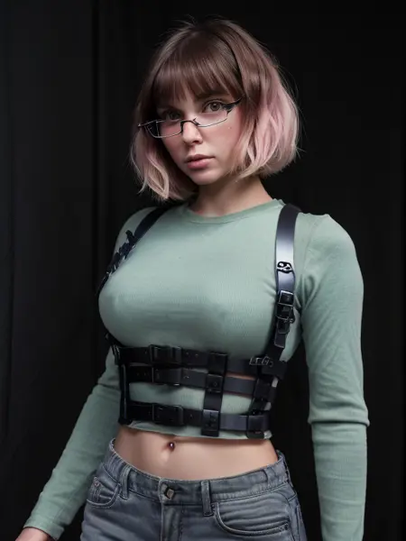 This Lora generates an underbust harness OVER clothes. Works best with sweaters, dresses and tshirts. Unpredictable results over see-through bodysuits. Full strength is best.