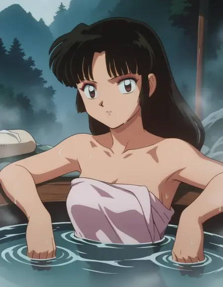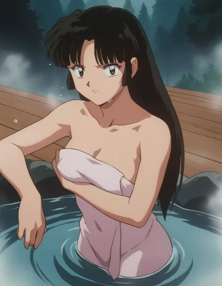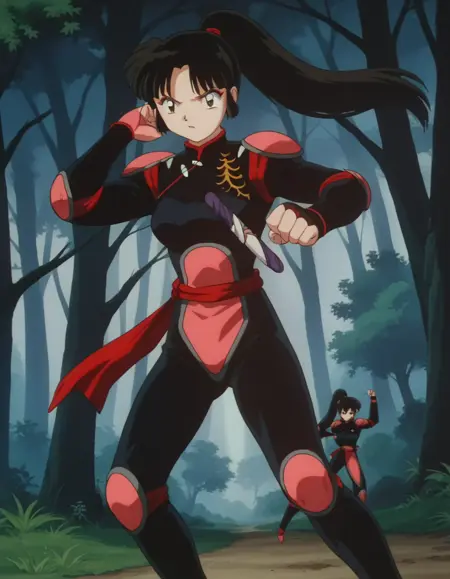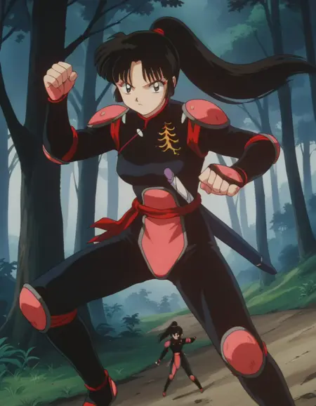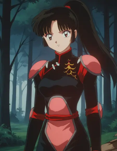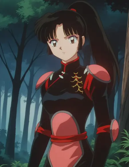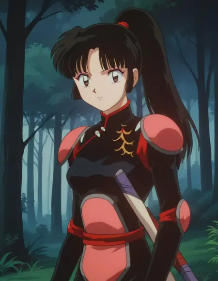 sango, long hair, black hair, brown eyes, retro artstyle,