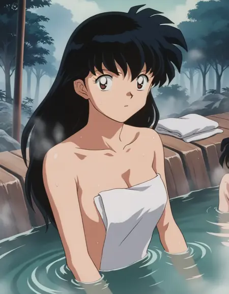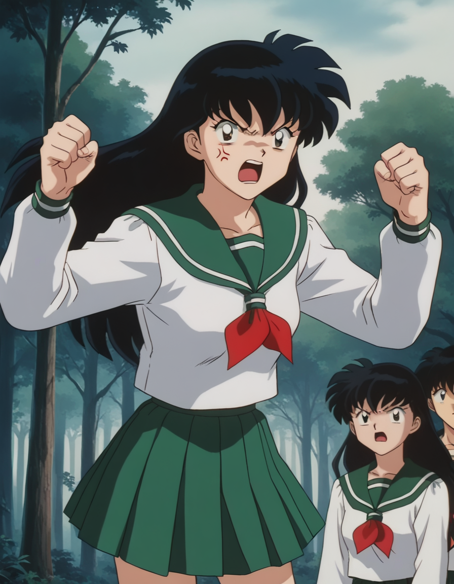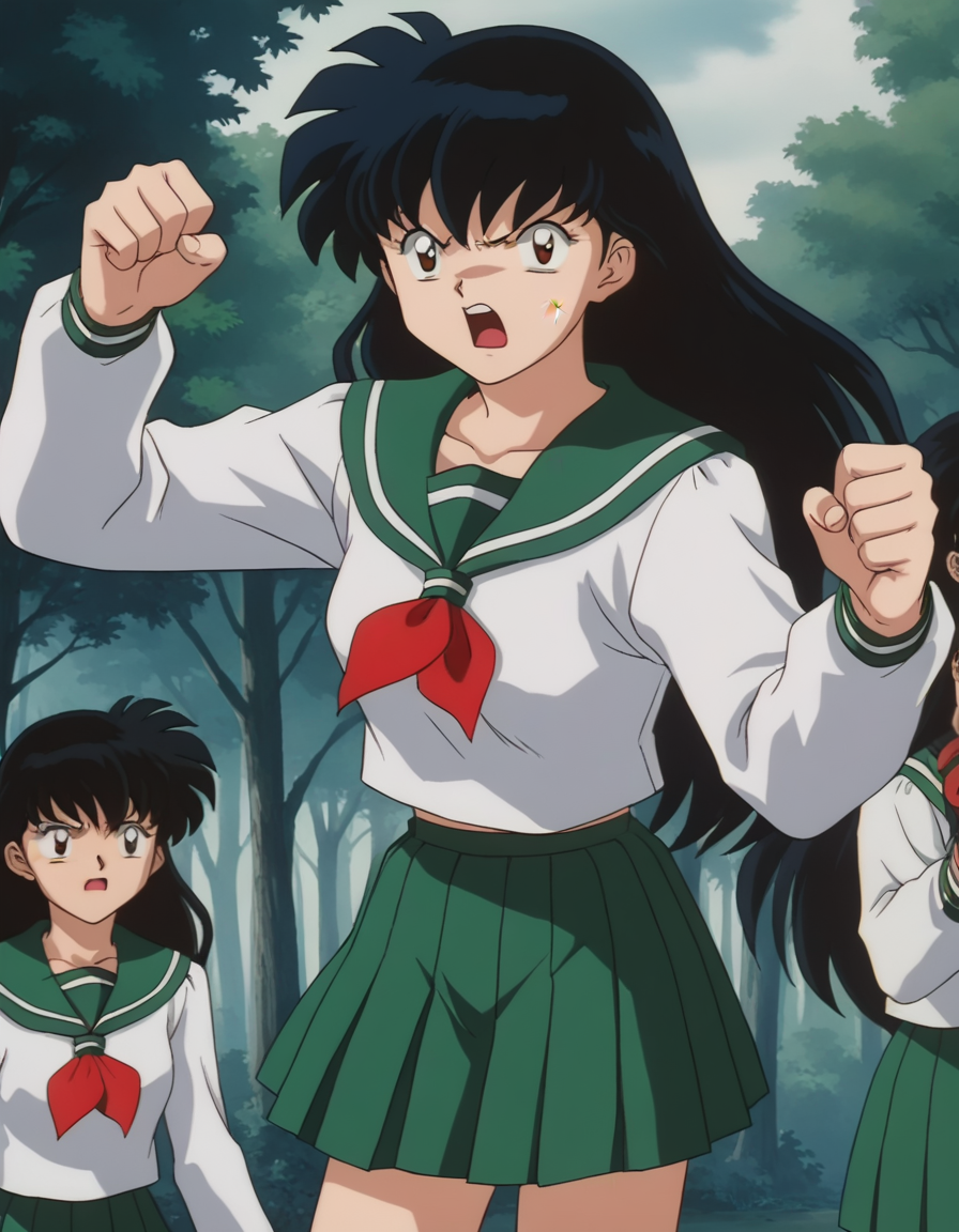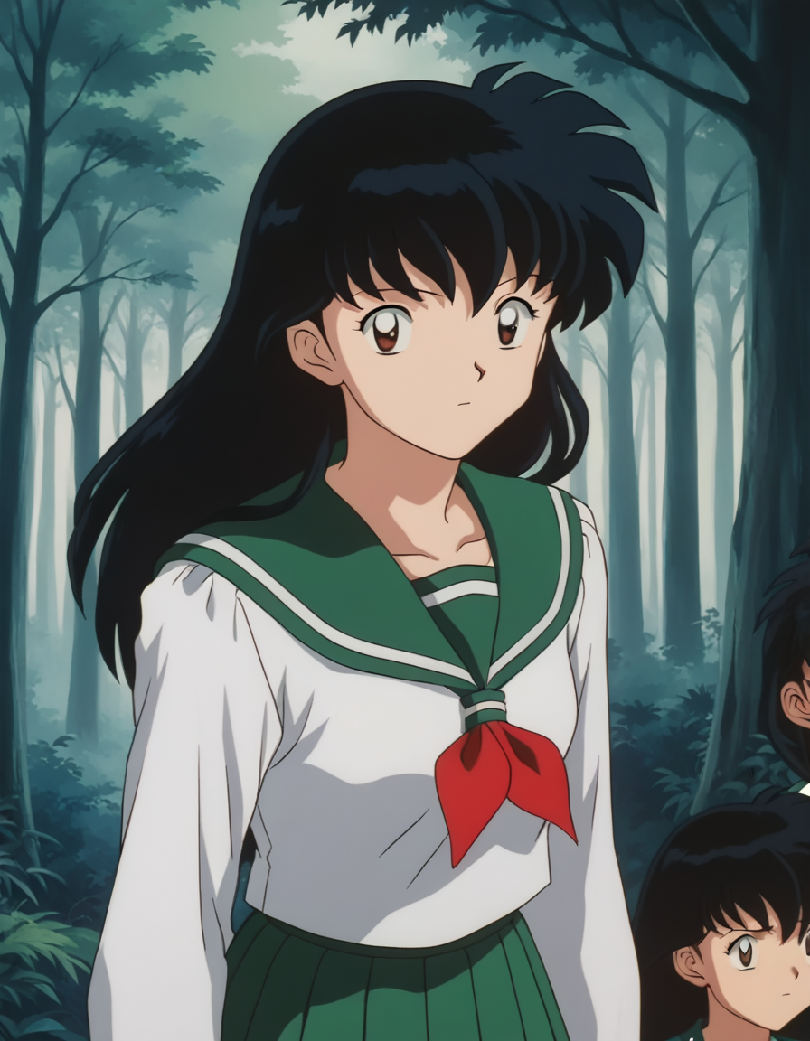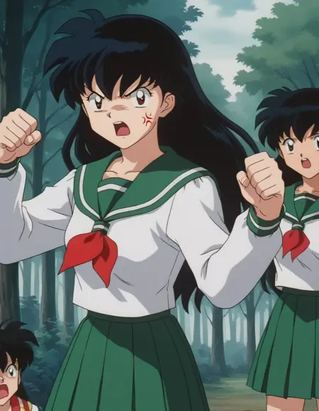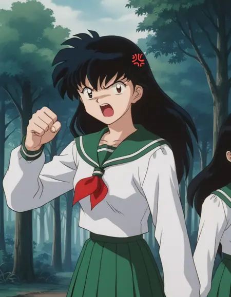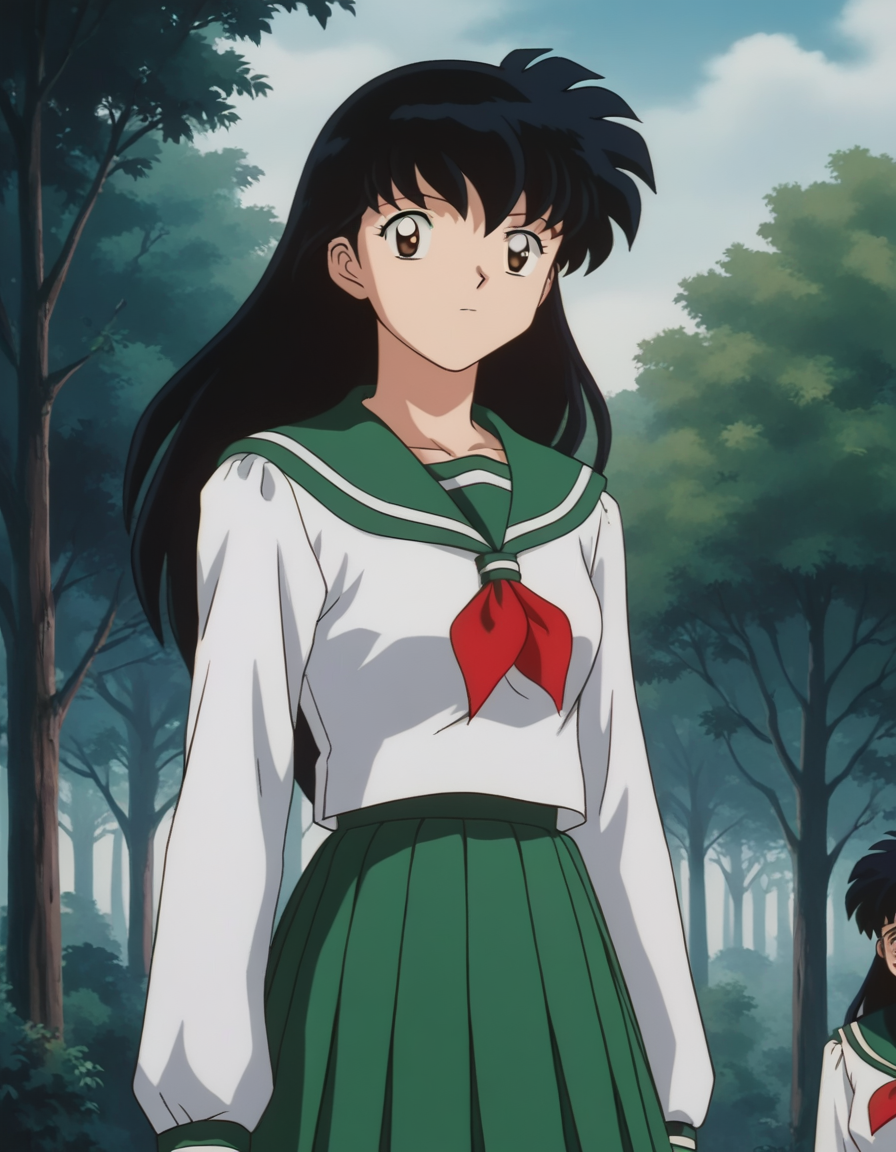kagome higurashi, long hair, black hair, retro artstyle, brown eyes,
