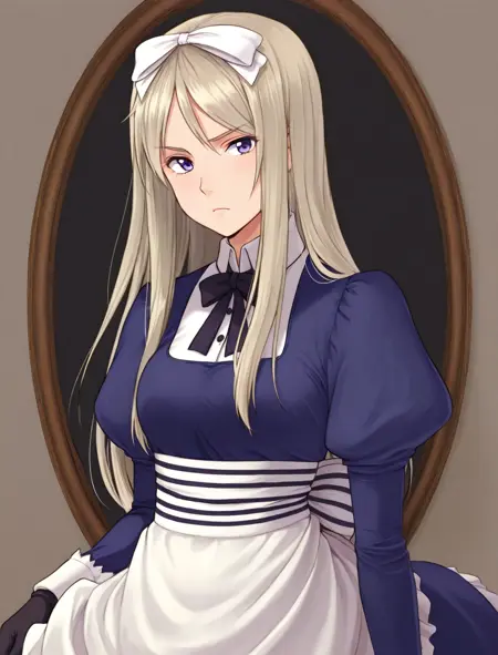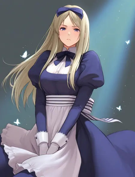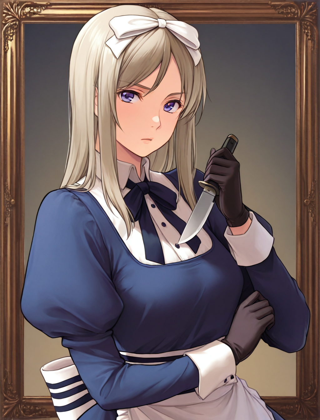 blue dress, neckbow, maid, apron