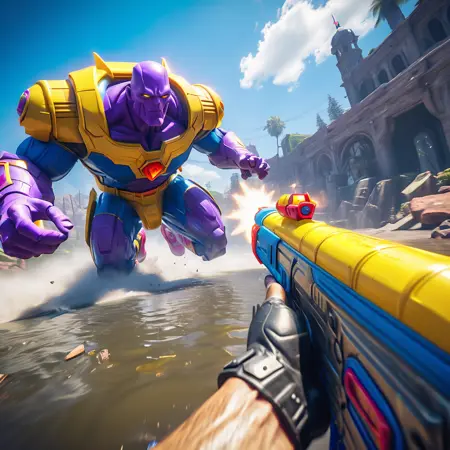 "a cinematic shot of a first person shooter, aiming with a ak-47, call of dudy, shooting a giant kraken, water in background, AK47 Pov"最初の画像は私の LoRA を使用したもの、2番目の画像は私の LoRA を使用していないもので、同じプロンプトとモデルを使用しています。