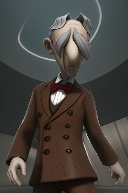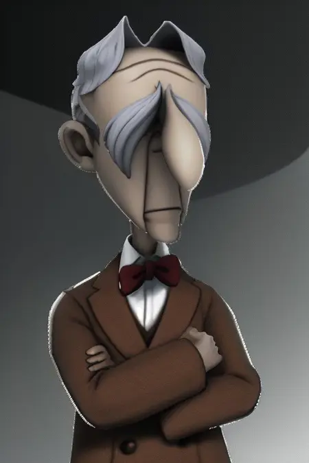 Prompt: Professor Pickles, white hair, big nose, brown coat, brown suit