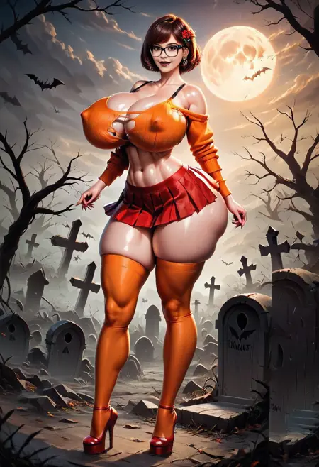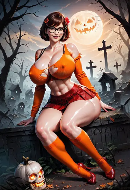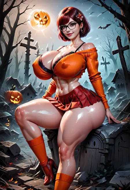 Velma: scooby_doo, velma, glasses, short hair, brown hair, freckles, detailed face, 1girl