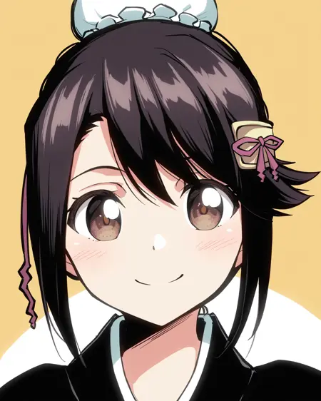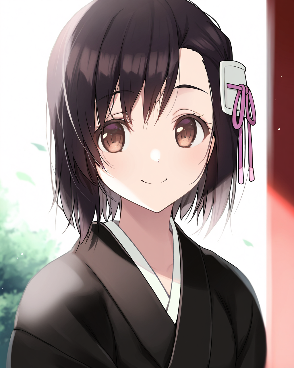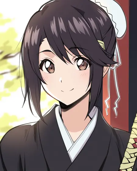 1女孩,独奏,短发,棕眼,黑发,发饰,肖像,黑色和服,袴,鞘装,