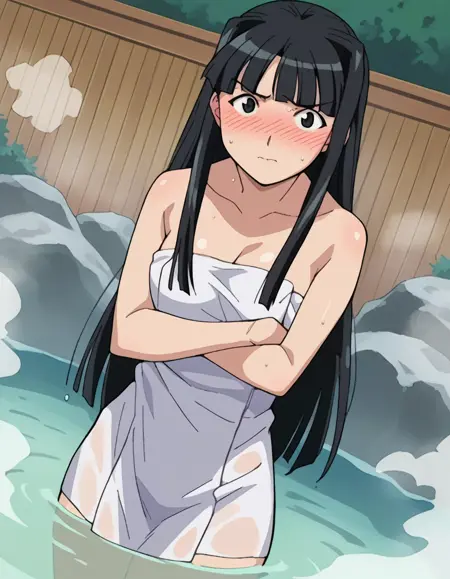 모토코 아오야마, 긴 머리, 검은 머리, 검은 눈, 앞머리,