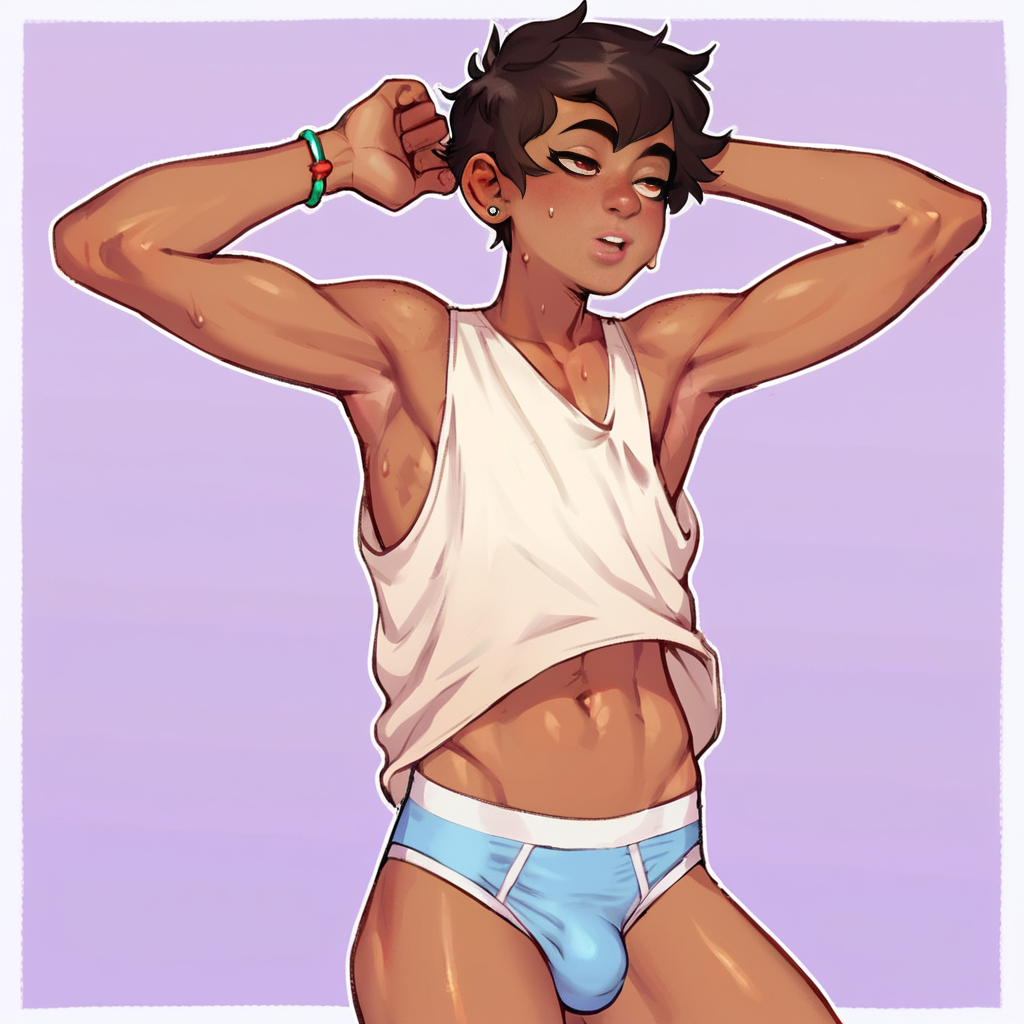 Note For v4: This model does an overall better job with the body types. 'Femboy' has the typical feminine body and face, while 'Androgynous' has a feminine face but a slightly more masculine body, and Twink has a more masculine, young face, with a body type that usually goes between skinny and toned. 'Skinny' does a better job of keeping to thinner bodies, 'Toned' is semi-muscular, while 'Muscular' is closer to the bara body type.