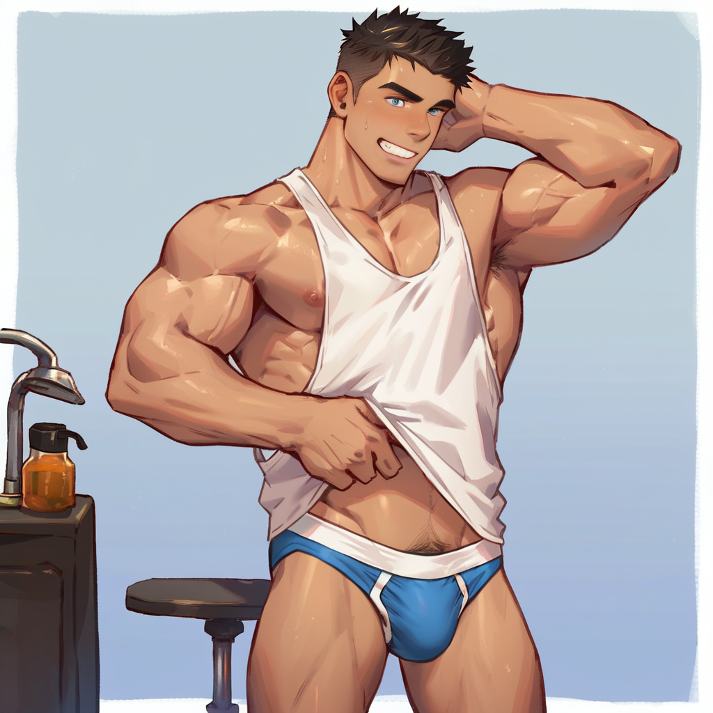 For those who don't know, Pony already does a decent job capturing most male body types, so in some cases a lora like this isn't even necessary. This began as an SDXL lora, as SDXL doesn't seem to have as much training on male bodies, and was just converted to Pony as a test to add a little more variety to what the base model already had. The main issue with Pony is that it seems like there was a very limited "photo/realistic" image set in the training data, so it does tend to give a similar face to most males done in a realistic style from my testing.
