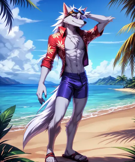 optional: blue skinsuit, studded armlet, studded bracelet, belt, brown boots