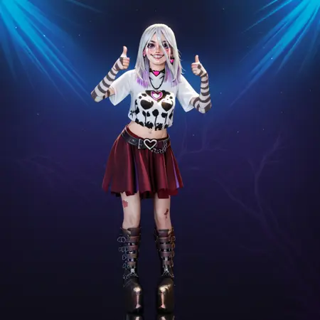 Just for fun, I added an image of Sable with a white shirt, red skirt, and platform shoes. I found one really cool image of her which isn't included in the training data (I didn't want to confuse the lora at all!) but this was the closest I managed to gen.