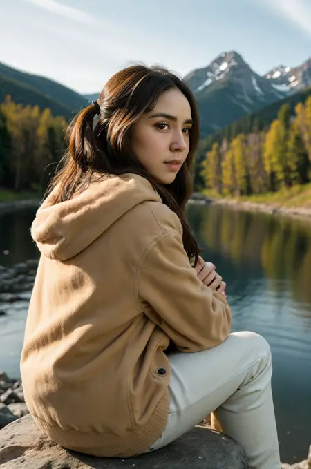 This girl doesn't exist, but is created by prompting age, gender and nationality, creating 107 pictures, 39 of which are facial closeups from different angles using different facial expressions.