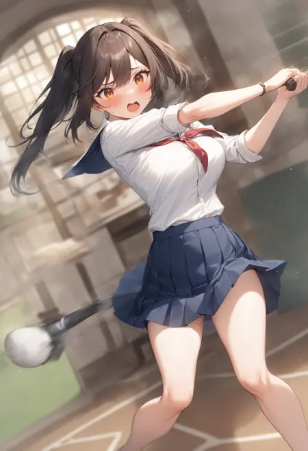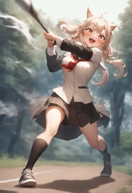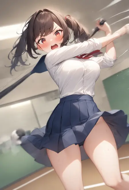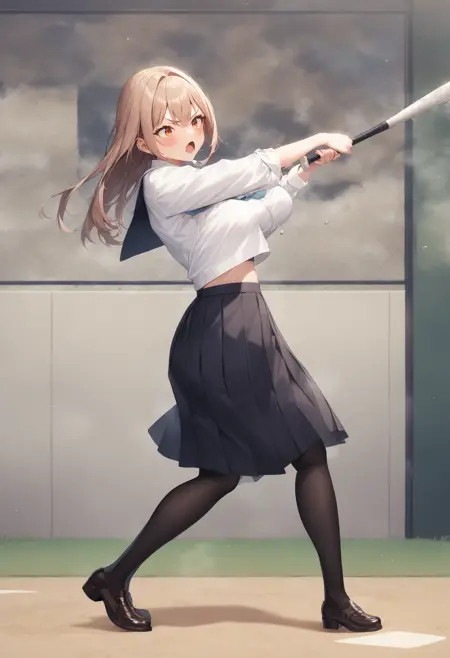 If you only use the trigger, the bat will swing around indoors, so you may want to add the necessary items from baseball bat, baseball, holding baseball bat, motion lines, motion blur, outdoors, baseball stadium to give it a realistic feel. It might be a good idea to include the necessary items from the following areas.