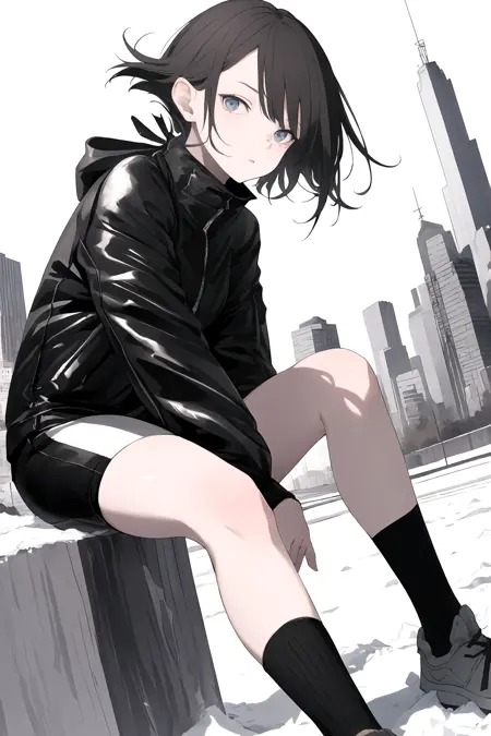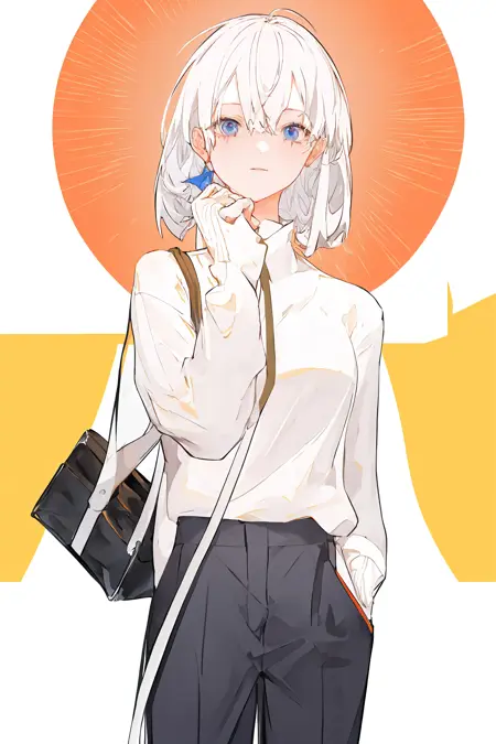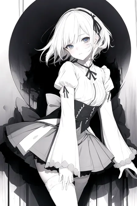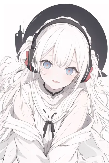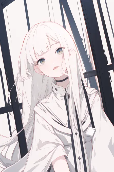该 LoRA 会倾向于生成包含各种白色元素的图片,同时保留一些额外颜色,例如肤色、发色、衣服颜色等,并非单纯的黑白单色图片。