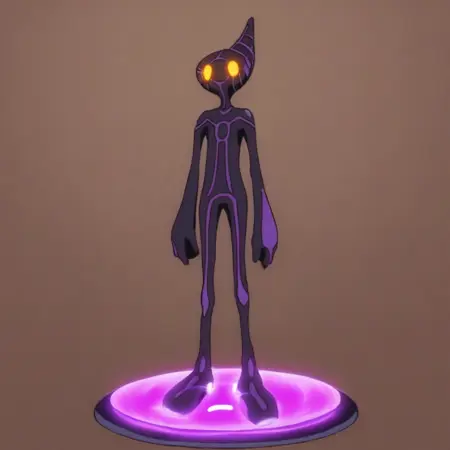 Tags: aiyugioh, 1boy, colored skin, yellow eyes, no pupils, neon trim, no humans, glowing eyes, outline, shiny