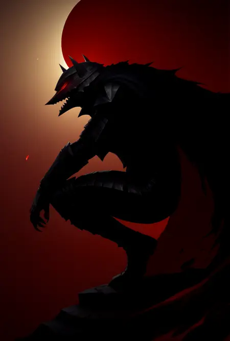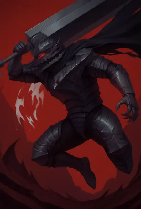 의상 2: ["Guts_Berserker, helmet, red eyes, glowing, black armor, clawed gauntlets, claws, torn cape, lora:GutsAnimdxlDwnsty:1"]