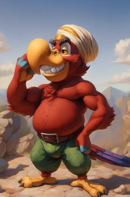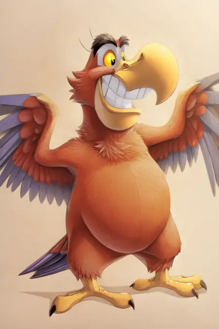 推荐搭配使用的LoRA:Puffin的兽化鸟类LoRA,有助于更好地呈现翅膀和手臂。