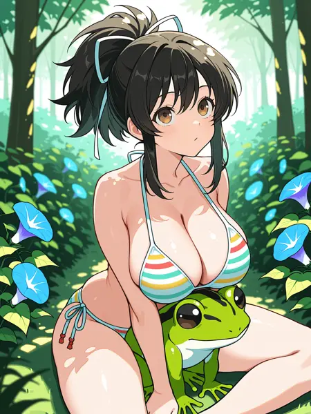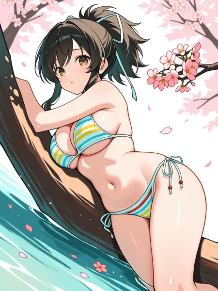 Trigger Words for her swimsuit are "asuka_swim_outfit, striped bikini, side-tie bikini bottom"