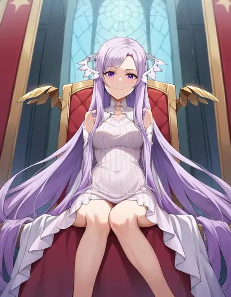 quinella, absurdly long hair, purple eyes, long hair, parted bangs, purple hair, very long hair, hair ornament,
