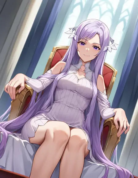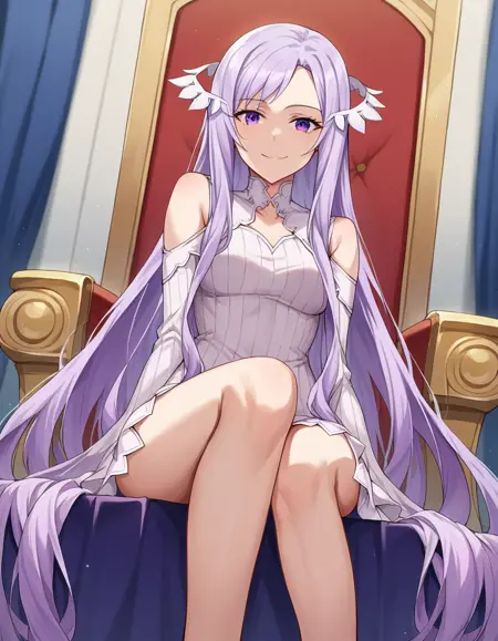 quinella, absurdly long hair, purple eyes, long hair, parted bangs, purple hair, very long hair, hair ornament,
