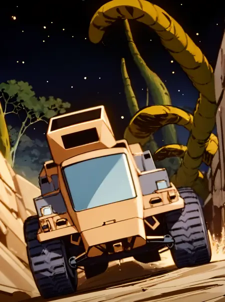 LoRA 的强度建议设置为 0.7 至 1.0,clip skip 设为 2。所有角色都应该能呈现出来,蔓生的藤蔓效果也不错。不过你可能需要多次进行局部重绘或重新生成,才能更准确地得到锯齿老板,以及尽可能接近原貌的载具——模型有时会把两者混在一起。但你可以自由创造新的载具和怪物思维! :)