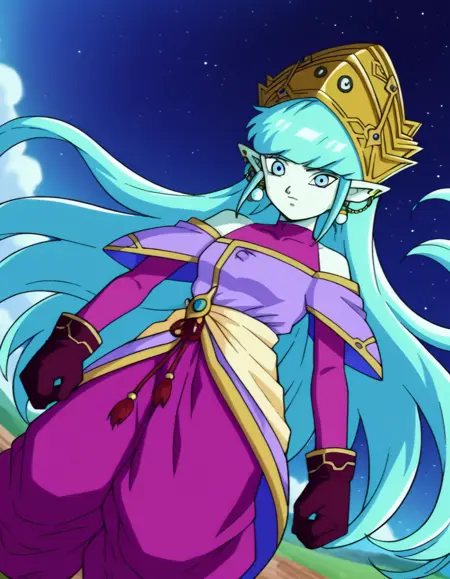 aeos formtwo, 긴 머리, 장갑, 보석, 파란 머리, 귀걸이, 뾰족한 귀, 바지, 청록색 머리, 색상이 있는 피부, 넉넉한 바지, 드레스, 보라색 드레스, 레오타드, 분홍 레오타드,